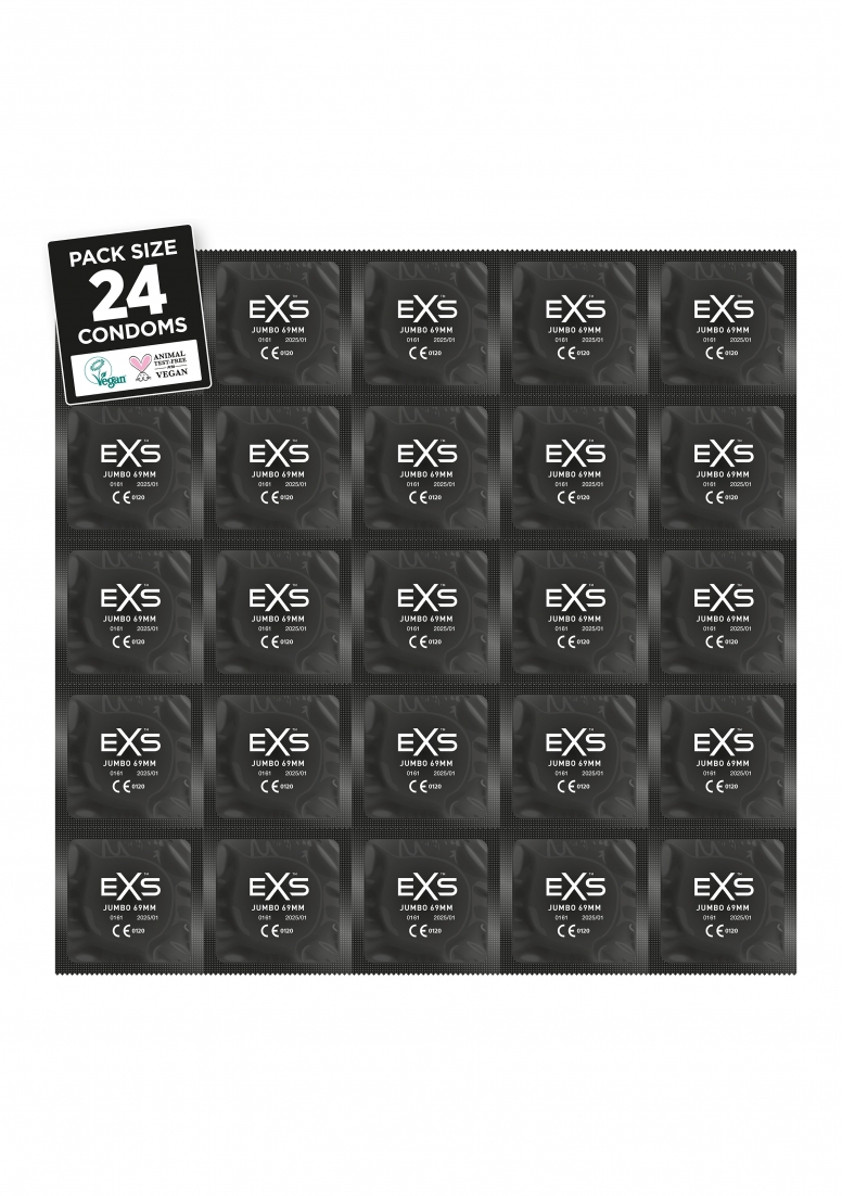 Jumbo Pack – 24 condoms – Jumbo Pack – 24 condoms – 24 Jumbo Condoms (69mm), the biggest size of the EXS Brand