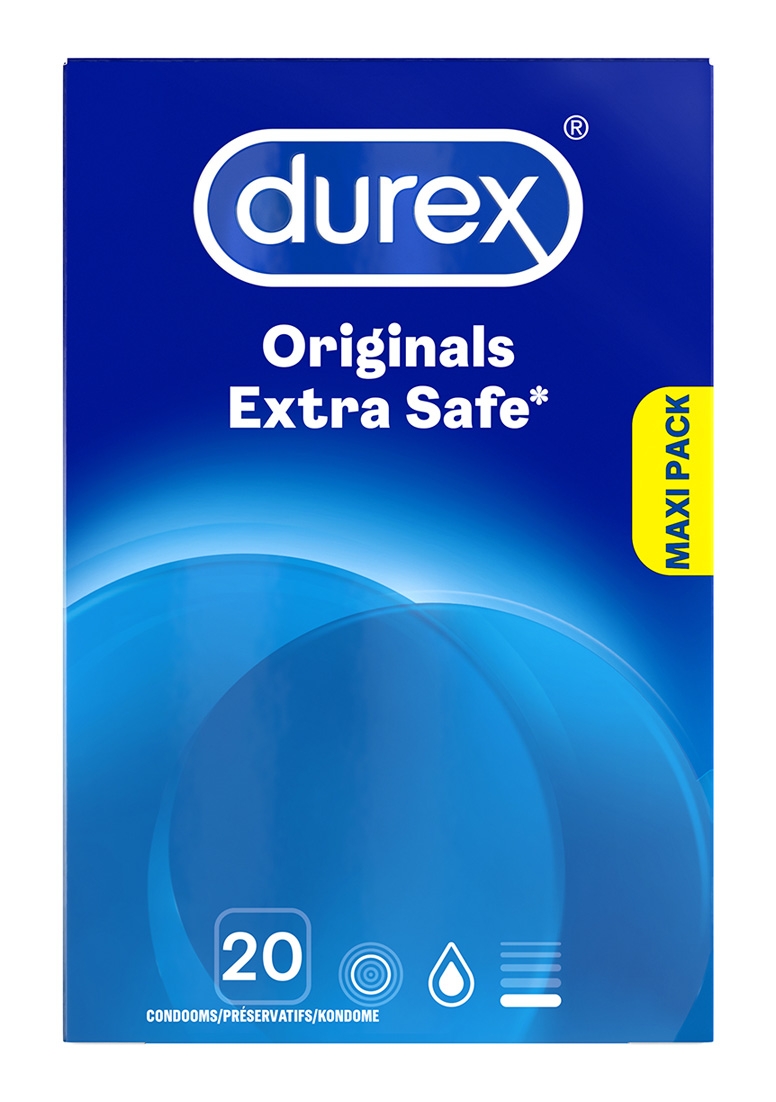 The Durex Originals Extra Safe condoms have been developed for maximum protection during intercourse. Thanks to the slightly thicker latex and the extra silicone lubricant our Extra Safe condoms offer you absolute security without having to settle for less pleasure. so completely relaxed and you don’t have to hold back.No form of contraception offers you 100% reliable protection against pregnancy HIV (AIDS) or other sexually transmitted diseases. Read the instructions on the inside of the package carefully especially when using the condom for anal or oral sex. “